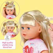 Хүргэлтийн бүс харах43см өндөр Карла хүүхэлдэй нь 4 ба түүнээс дээш насны хүүхдүүдэд зориулсан, олон төрлийн үйлдэлтэй, сонирхолтой тоглоом юм. Гол онцлогууд нь: 1.Бодит мэт үйлдлүүд: Хүүхэлдэй нь батарейгүйгээр ажилладаг долоон бодит үйлдэлтэй. 2.Уян хатан үе мөчүүд: Толгой, мөр, тохой, өвдөгний үе мөчүүд нь хөдөлгөөнтэй тул янз бүрийн байрлалд оруулж, бүжгийн хөдөлгөөн хийх боломжтой. 3.Усанд орох боломжтой: Зөөлөн арьстай тул усанд оруулж болно. 4.Үсний засалт: Урт шаргал үстэй бөгөөд үсний сам, үсний боолт, үсний хавчаар, өнгөт үсний тууз зэрэг дагалдах хэрэгслүүдтэй. 5.Хувцас: Загварлаг хувцас, юбка өмссөн байдаг нь дүрд тоглох тоглоомыг илүү сонирхолтой болгодог. 6.Хөгжлийн ач холбогдол: Хүүхэлдэйгээр тоглох нь төсөөлөл, нийгмийн ур чадвар, хариуцлага, харилцаа, энэрэнгүй сэтгэл зэрэг үнэт зүйлсийг хөгжүүлэхэд тусалдаг.